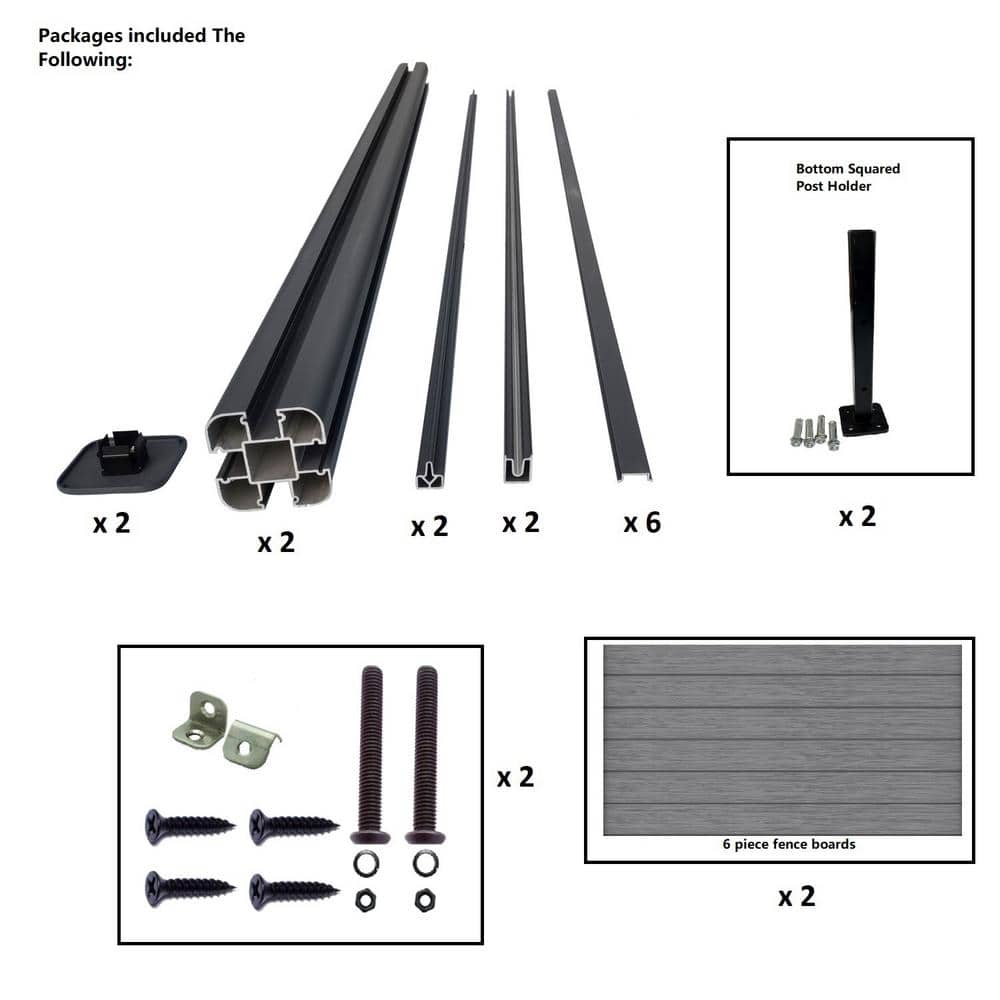 LH EP Complete Kit 6 ft. x 6 ft. Embossed Gray WPC Composite Fence Panel with Bottom Squared Holders and Post Kits (1-set)