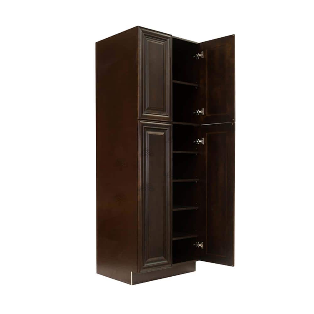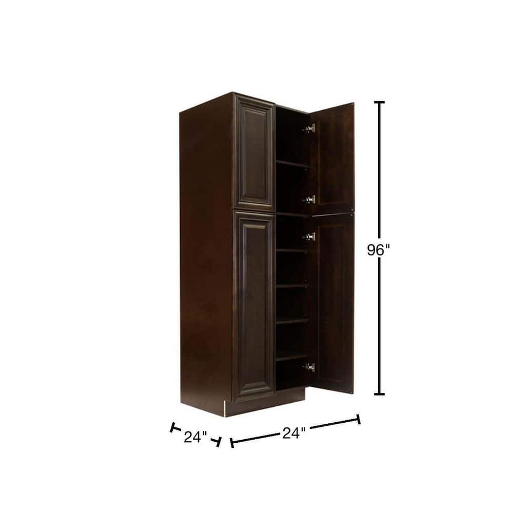 LIFEART CABINETRY Edinburgh Espresso Plywood Raised Panel Stock Assembled Tall Pantry Kitchen Cabinet (24 in. W x 96 in. H x 24 in. D)