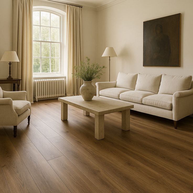The Hyde Creek Oak flooring transforms any room into a haven of sophistication and warmth. Its realistic woodgrain texture and wide plank design create a bold yet inviting aesthetic. Pair it with modern furniture and metallic accents for a chic, contemporary look. This flooring is not just a surface; it's a statement of style and durability, perfect for luxurious living.