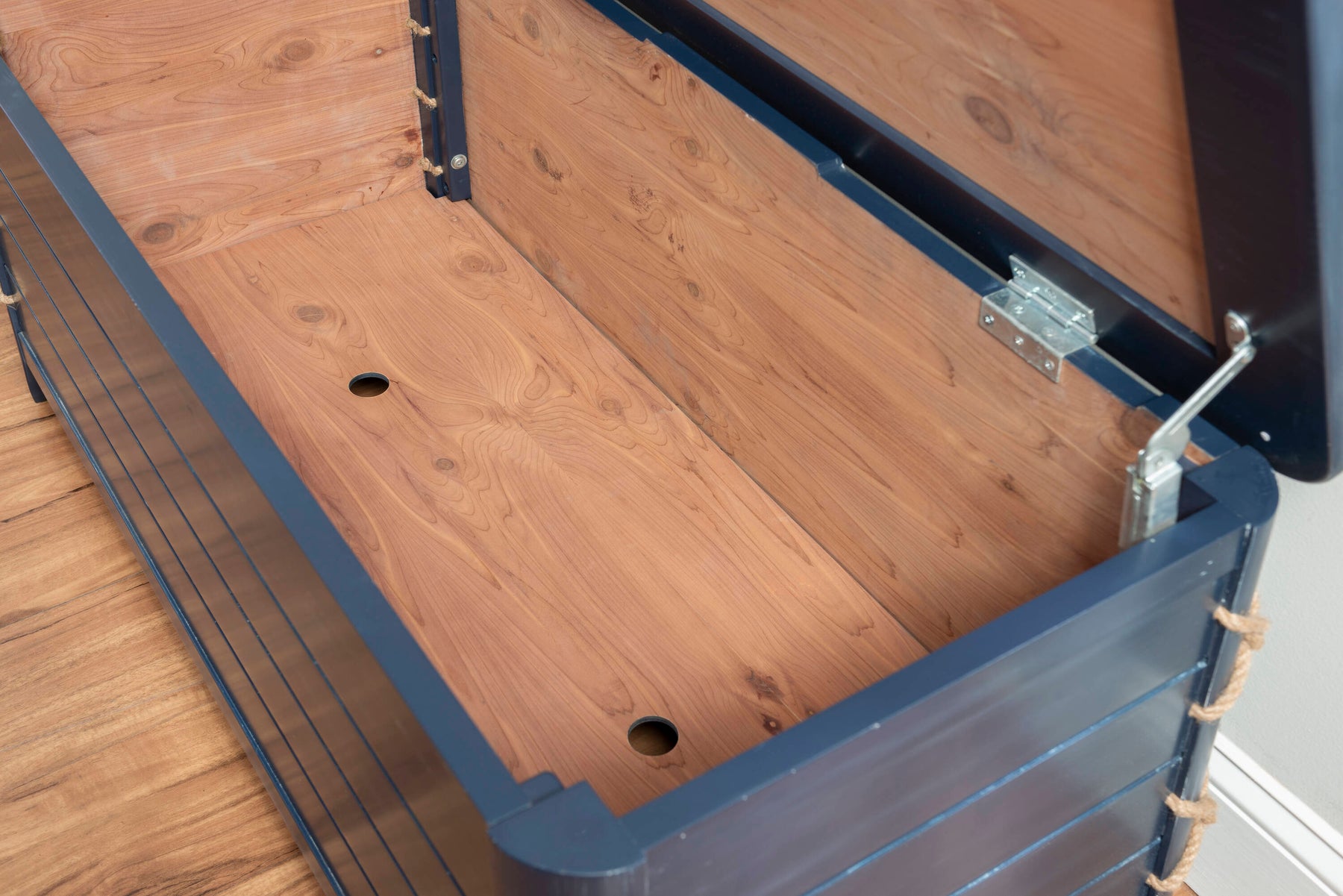 Secure your Linon Cedar-Lined Blue Storage Chest now and transform your living space with timeless elegance and practical storage solutions.