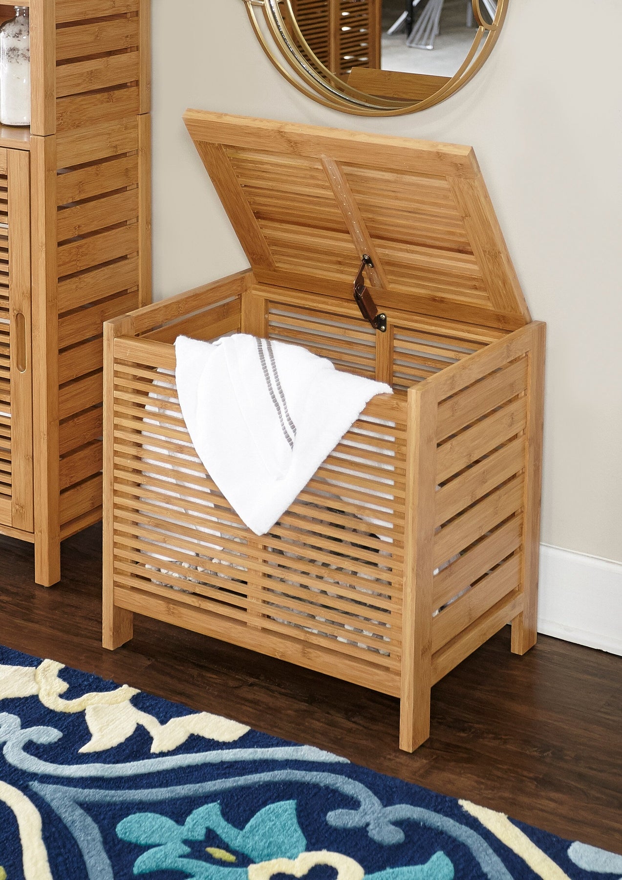 Embrace eco-friendly elegance and order your Linon Bracken Bamboo Hamper today, for a stylish solution to laundry organization.