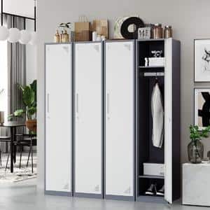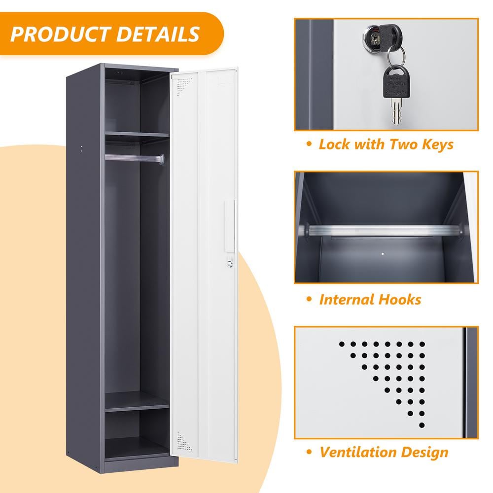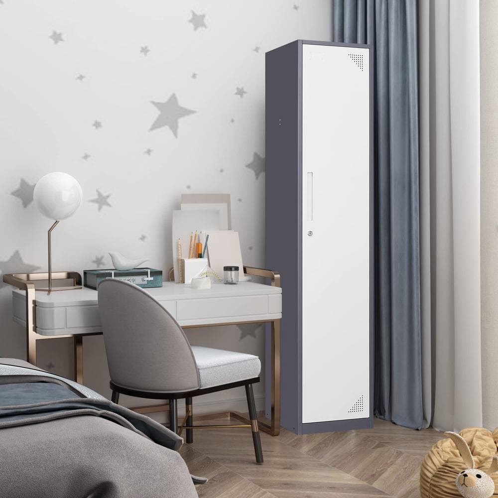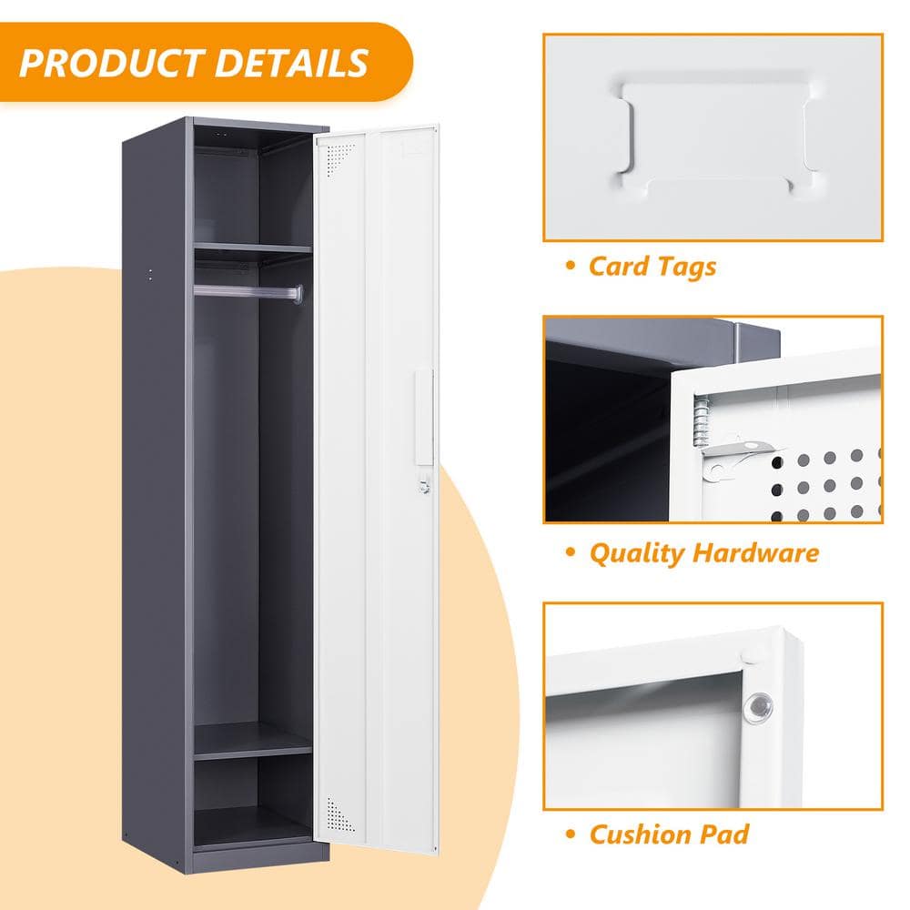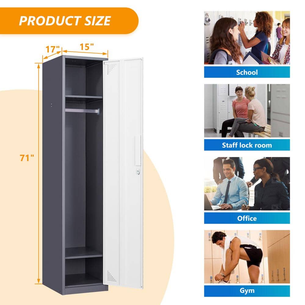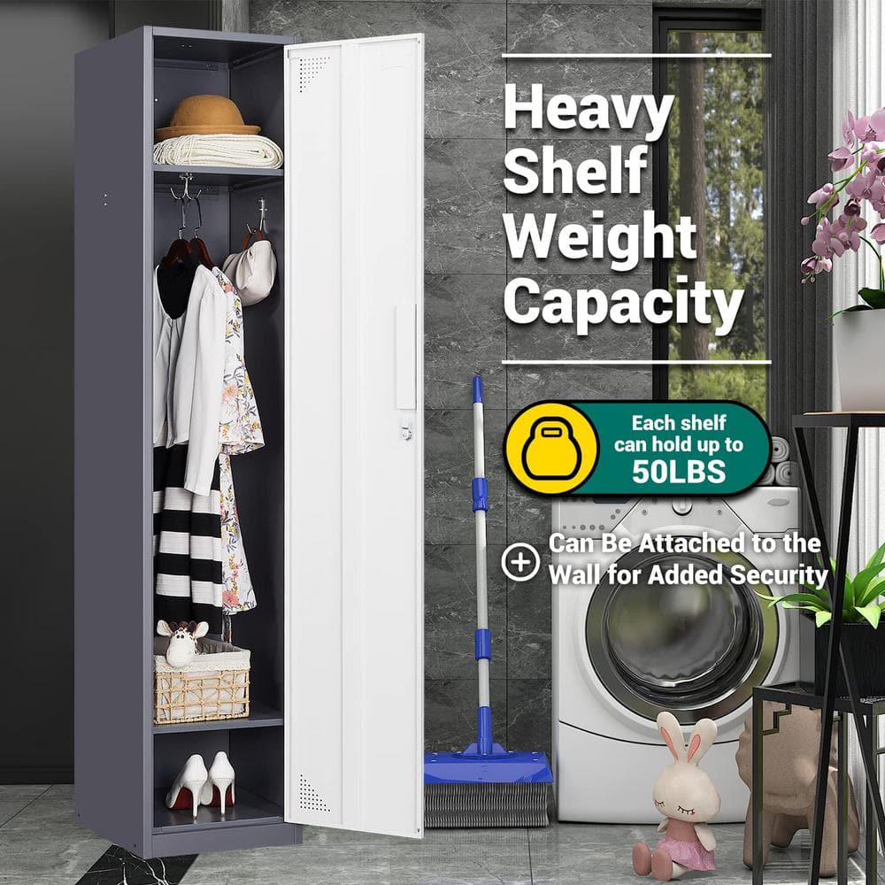 LISSIMO 3-Tier Metal Locker for Home, Dressing Room, 71 in. Steel Storage Lockers with 1 Door for Employees (Grey and White)