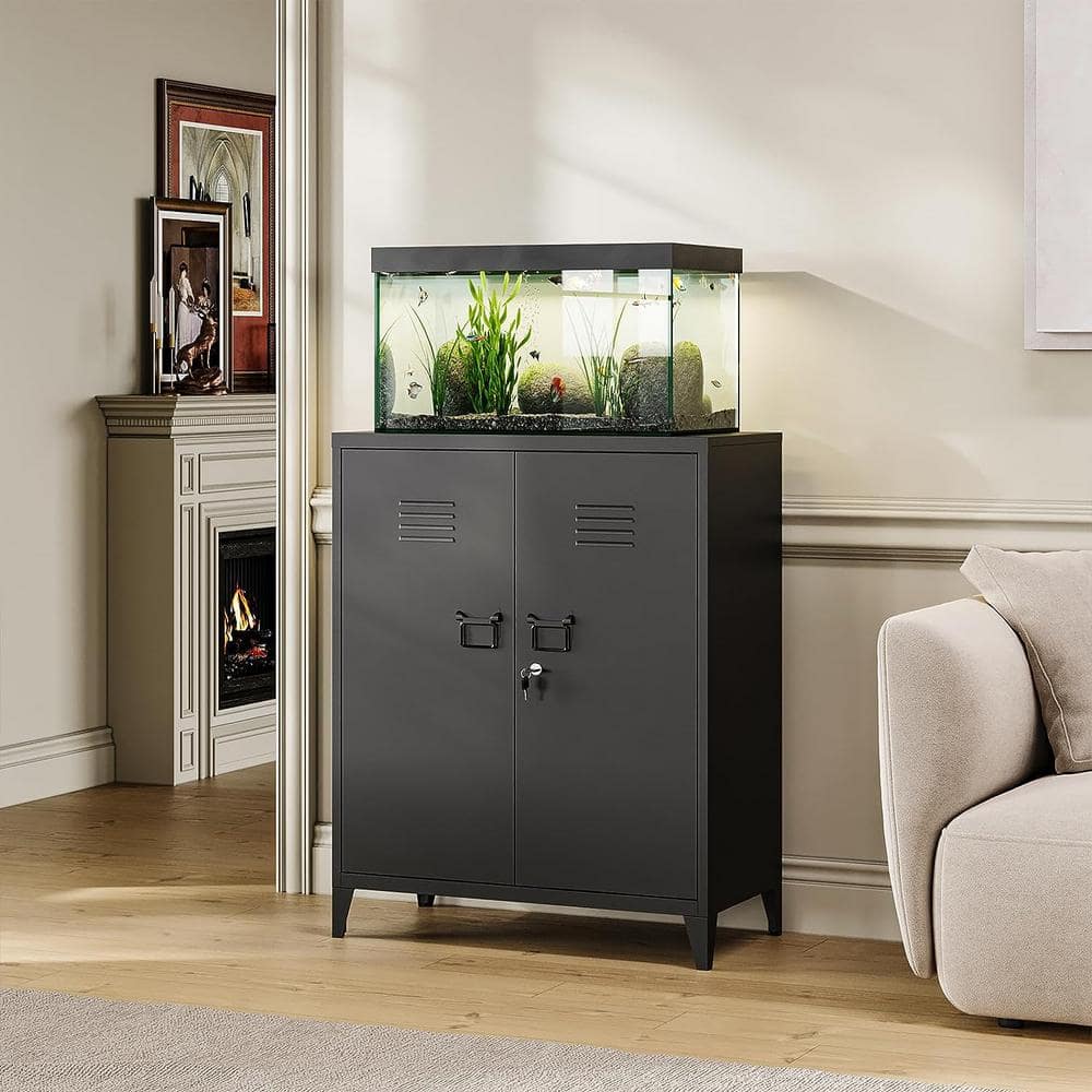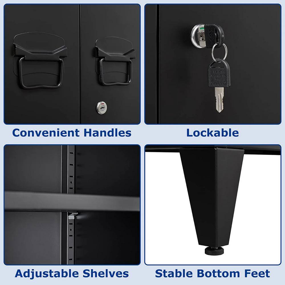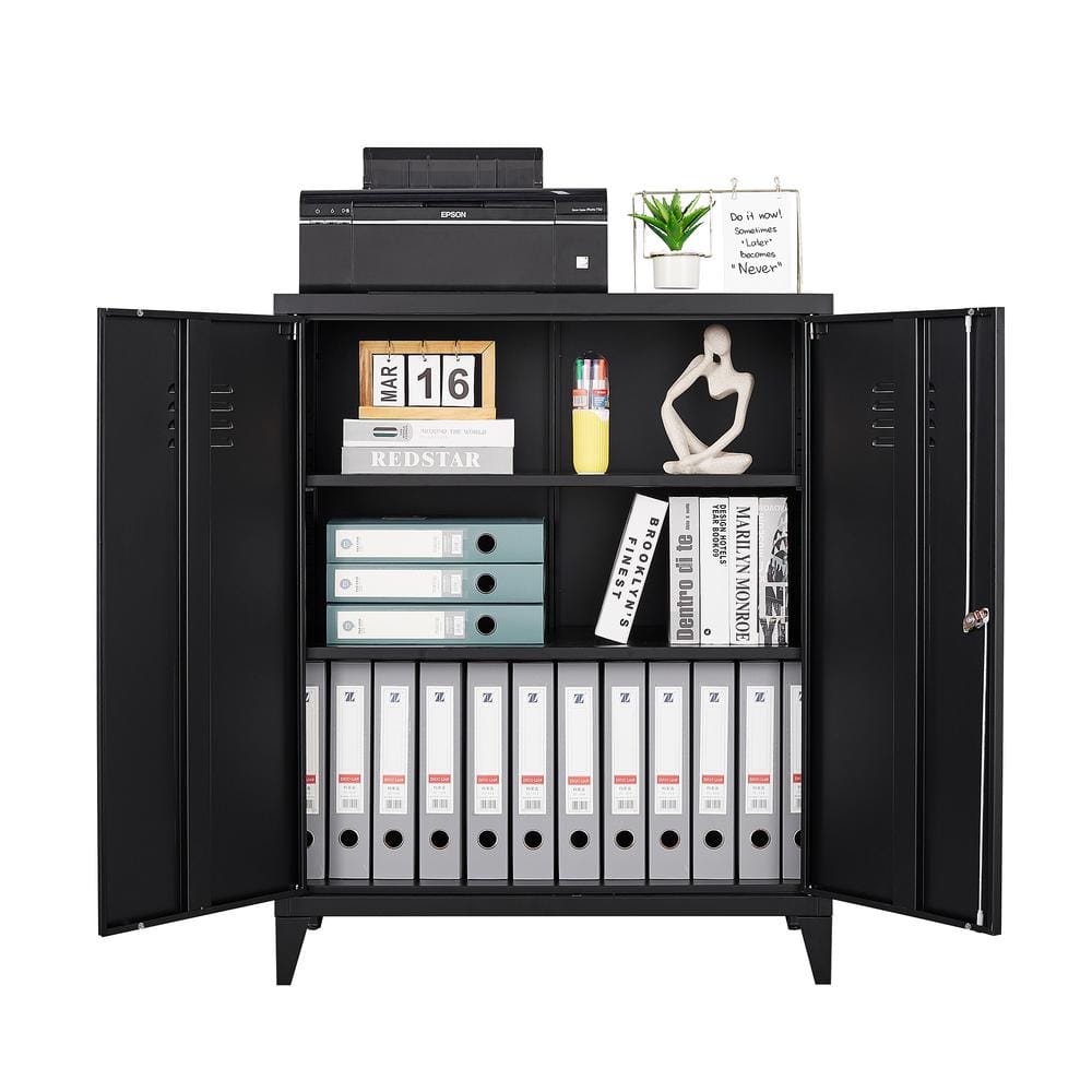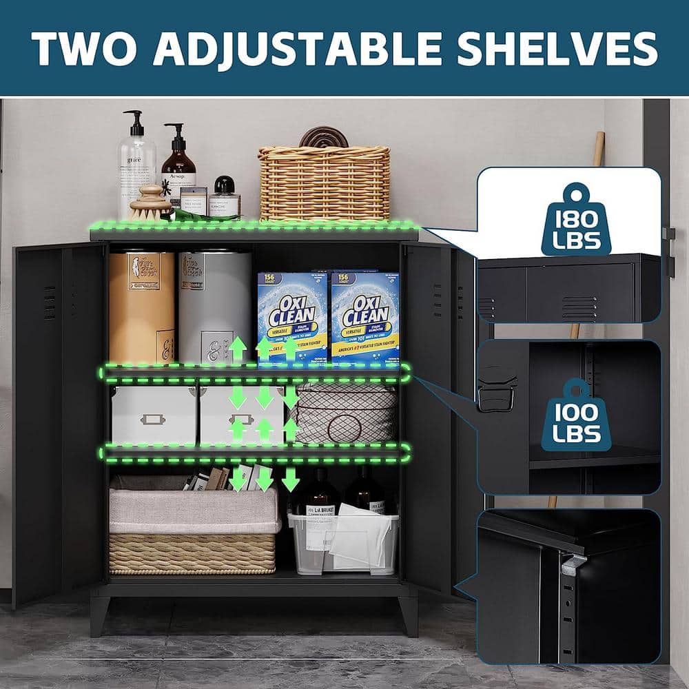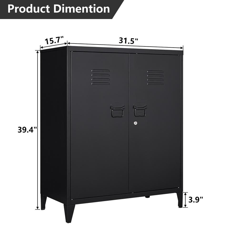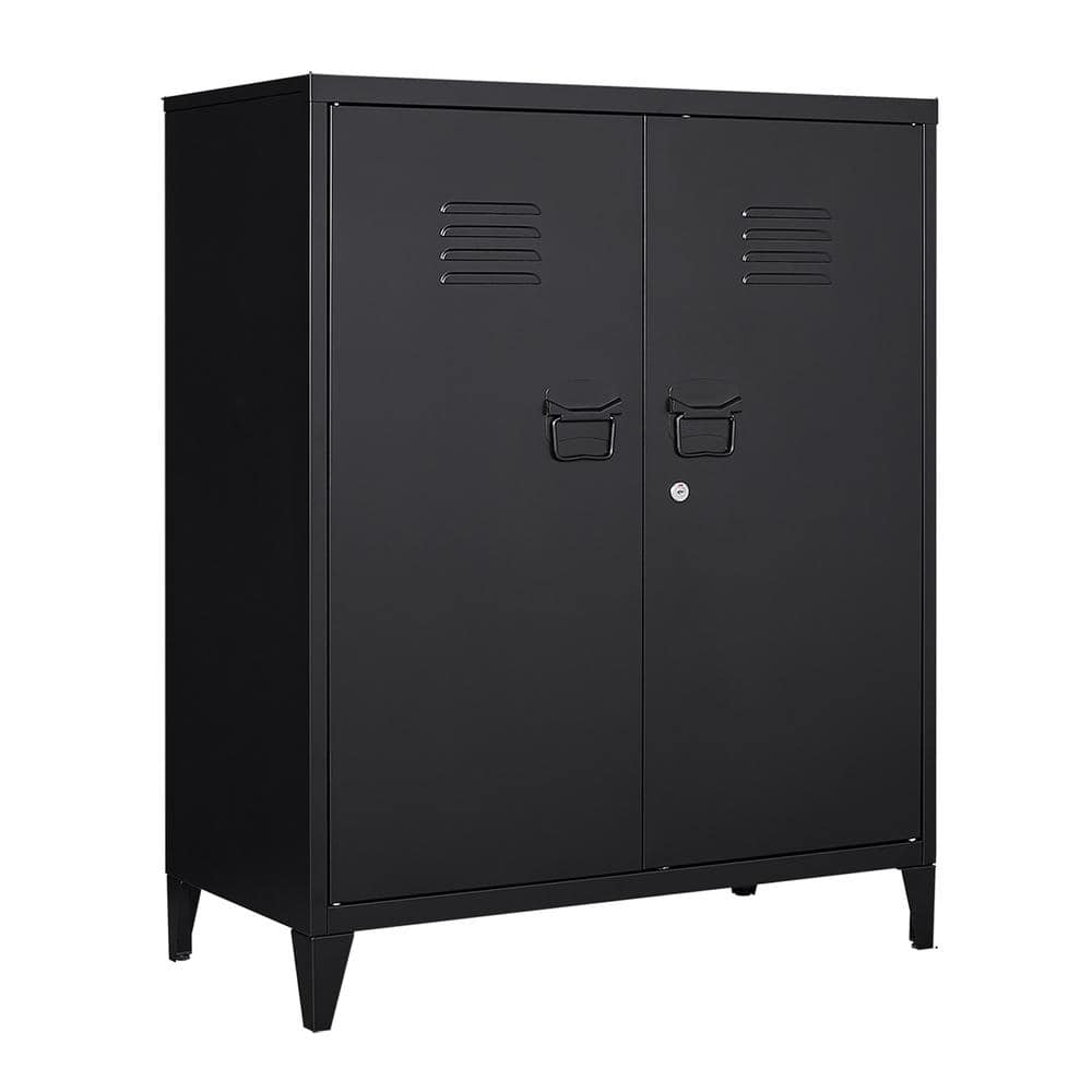 LISSIMO 31.5 in. W 2-Shelf Locker, Lockable Home Office Storage Cabinets with 2 Doors and Shelves for Home, Office in Black