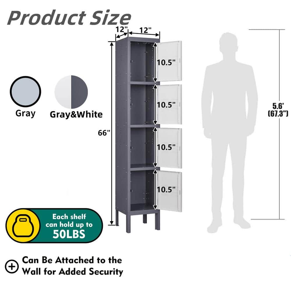 LISSIMO 4 Door 4-Tier Locker, Employees Storage Metal Lockers 66 in. Lockable Steel Cabinet for School Gym Home Office