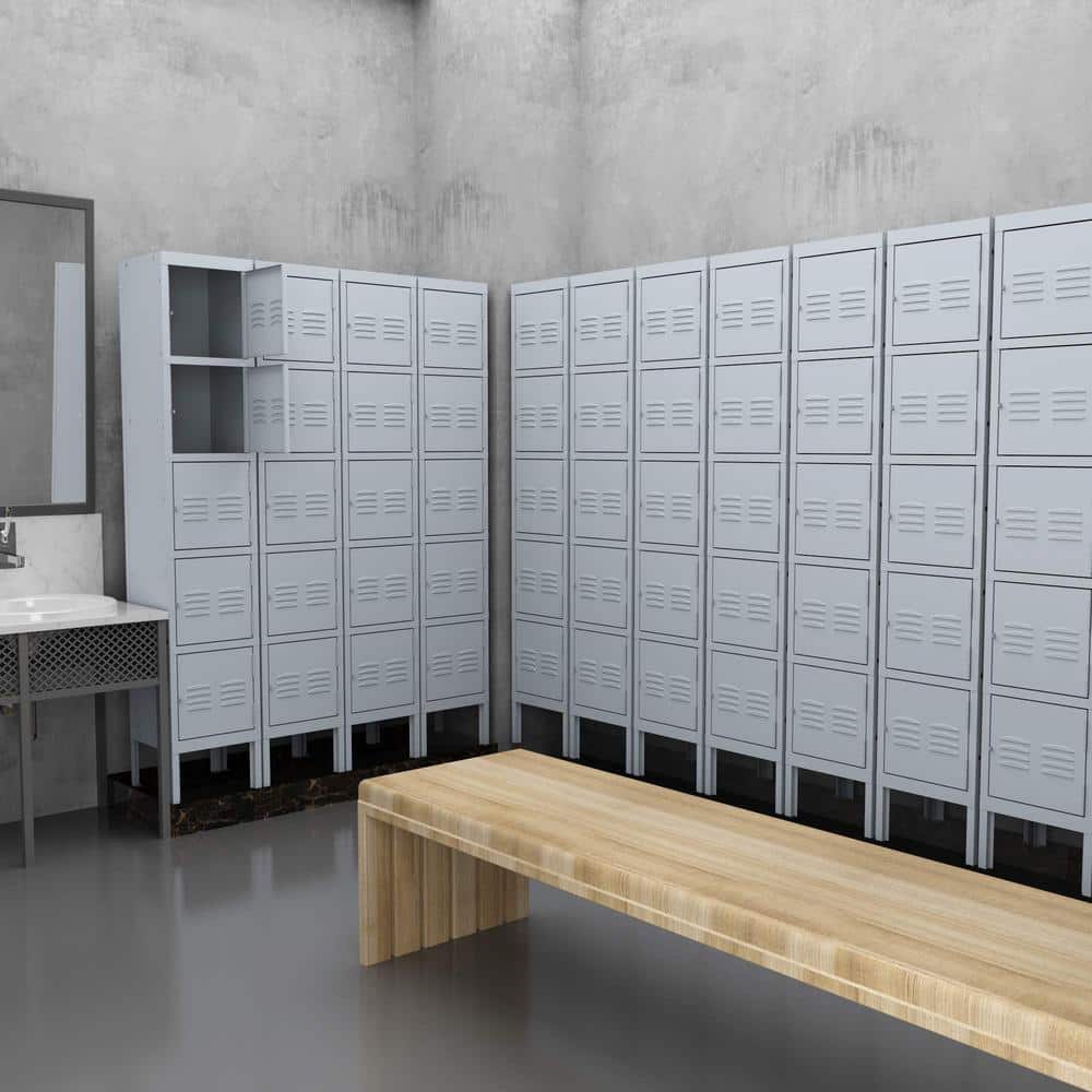 Q: Can this locker be used in moist environments? A: Yes, the ventilated design helps keep contents dry, making it suitable for moderately moist environments like locker rooms.