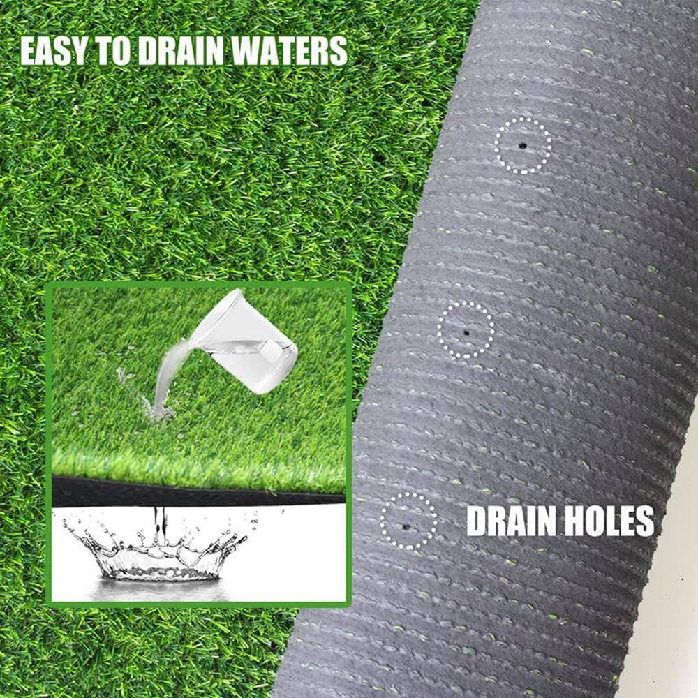 A: The turf is perforated for superior drainage, allowing rainwater to pass through easily, preventing water pooling and ensuring a dry, mud-free surface.