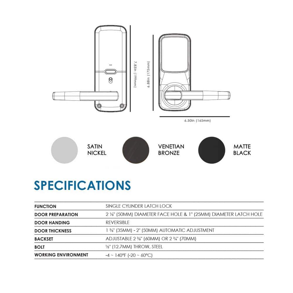 | Features | Adjustable Backset,Automatic Relocking,Backlit,Concealed Screws,Delay Timer,Easy Installation,Hub Included,Indicator Light(s),LED Backlight,Low Battery Indicator Light,Rekeyable,Voice Assistant |