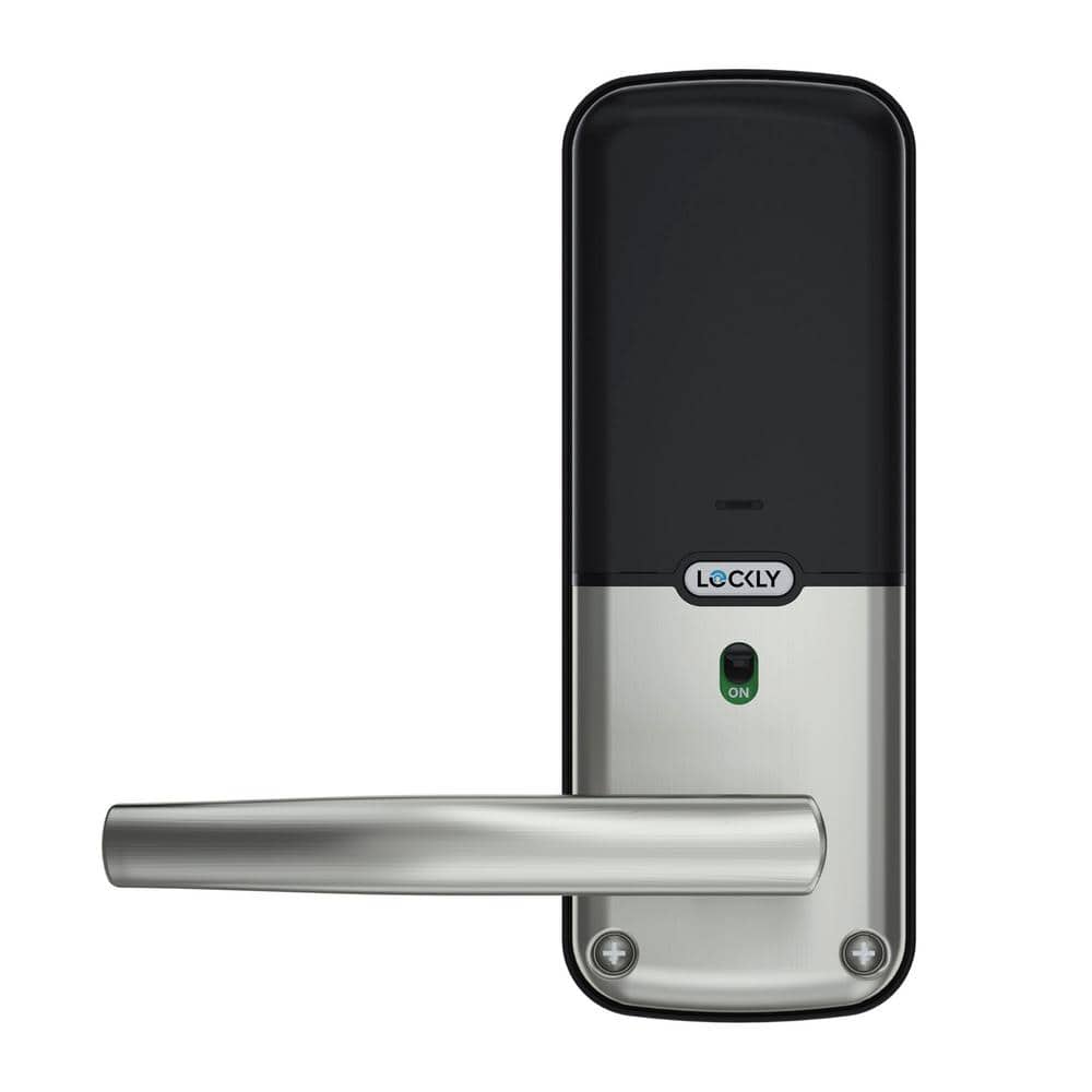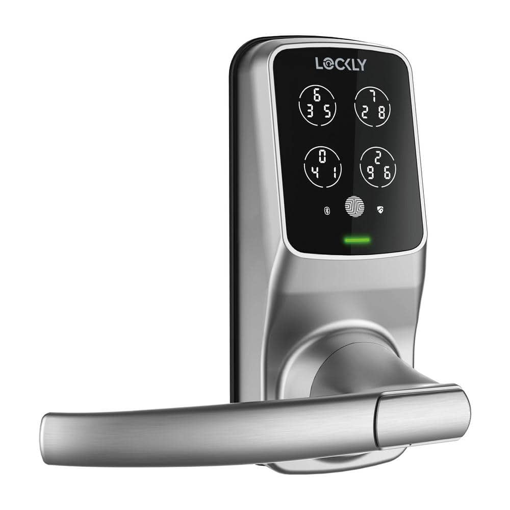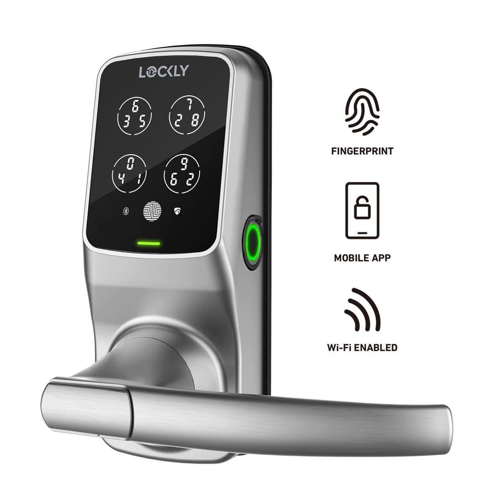 Lockly Secure Pro Satin Nickel Smart WiFi Mobile App-Controlled Lever Latch, 3D Fingerprint, Keypad, Works w/ Hey Google/Alexa