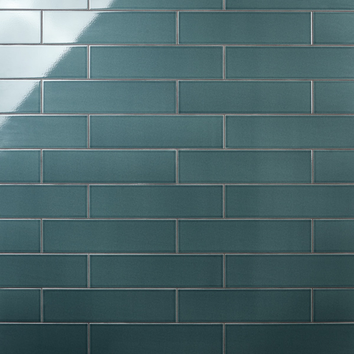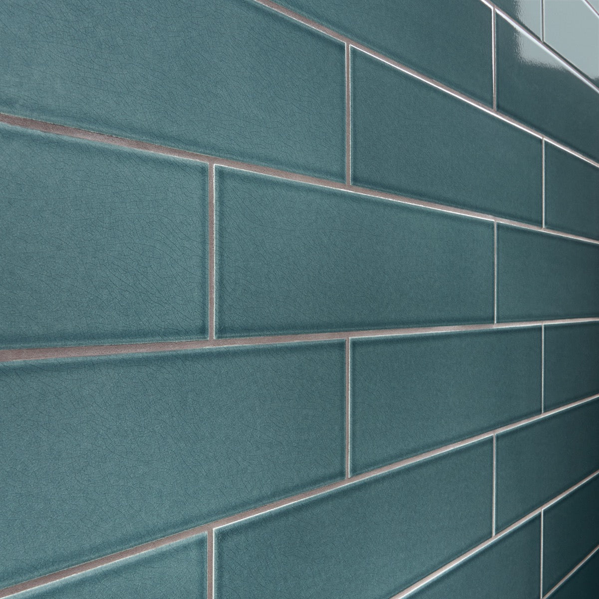 The Colorplay Emerald Green Ceramic Tile features a crackled glossy finish and a rich green hue, perfect for creating a bold and elegant look in any space. Its oversized subway-like format adds a modern touch to walls, backsplashes, and more.