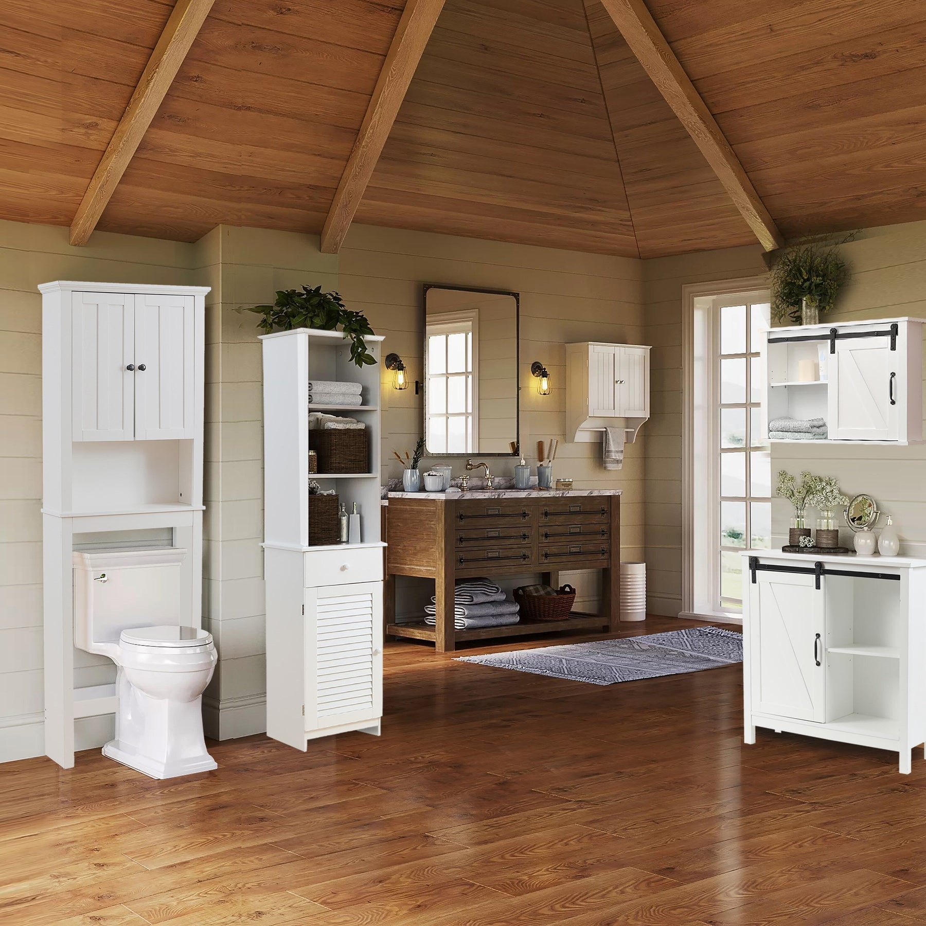 The LuxenHome White Freestanding Linen Cabinet elevates any room with its charming farmhouse design and brilliant white finish. Its standout sliding barn door adds rustic allure, ideal for spaces craving both function and style. Envision this piece not only in the bathroom but also as a chic organizer in an entryway or home office. Simplistic yet luxurious, this cabinet isn’t just storage; it’s a statement of refined living.