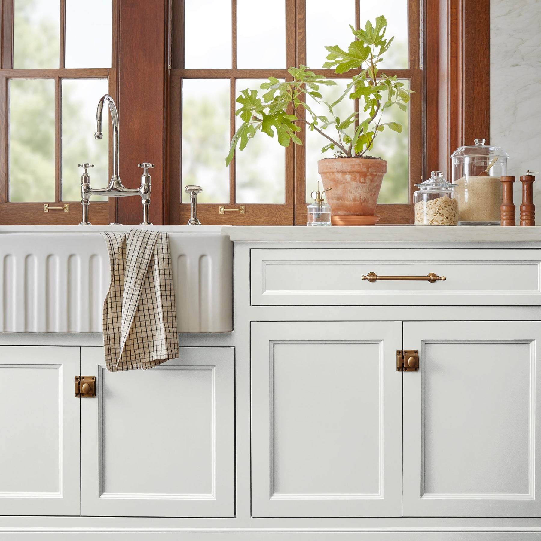 Premium interior cabinet and trim paint in True White, formulated by Magnolia Home by KILZ. The durable semi-gloss finish resists wear and cleans easily, ideal for doors, cabinetry, and trim in high-traffic spaces.