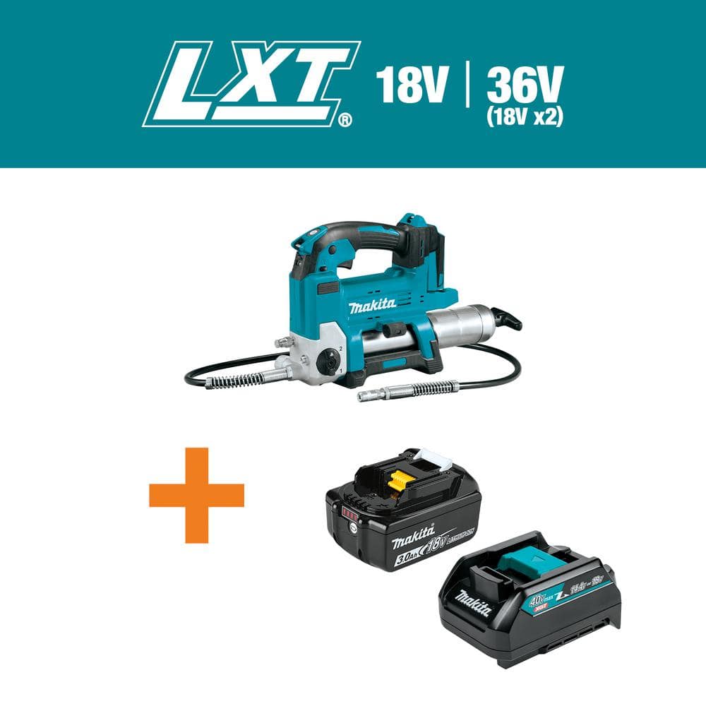 Q: Is the battery and adapter compatible with other Makita tools? A: Yes, the included 18V LXT 3.0Ah battery is part of Makita's 18V LXT tool system, offering compatibility across a wide range of tools. The adapter allows use with XGT chargers.
