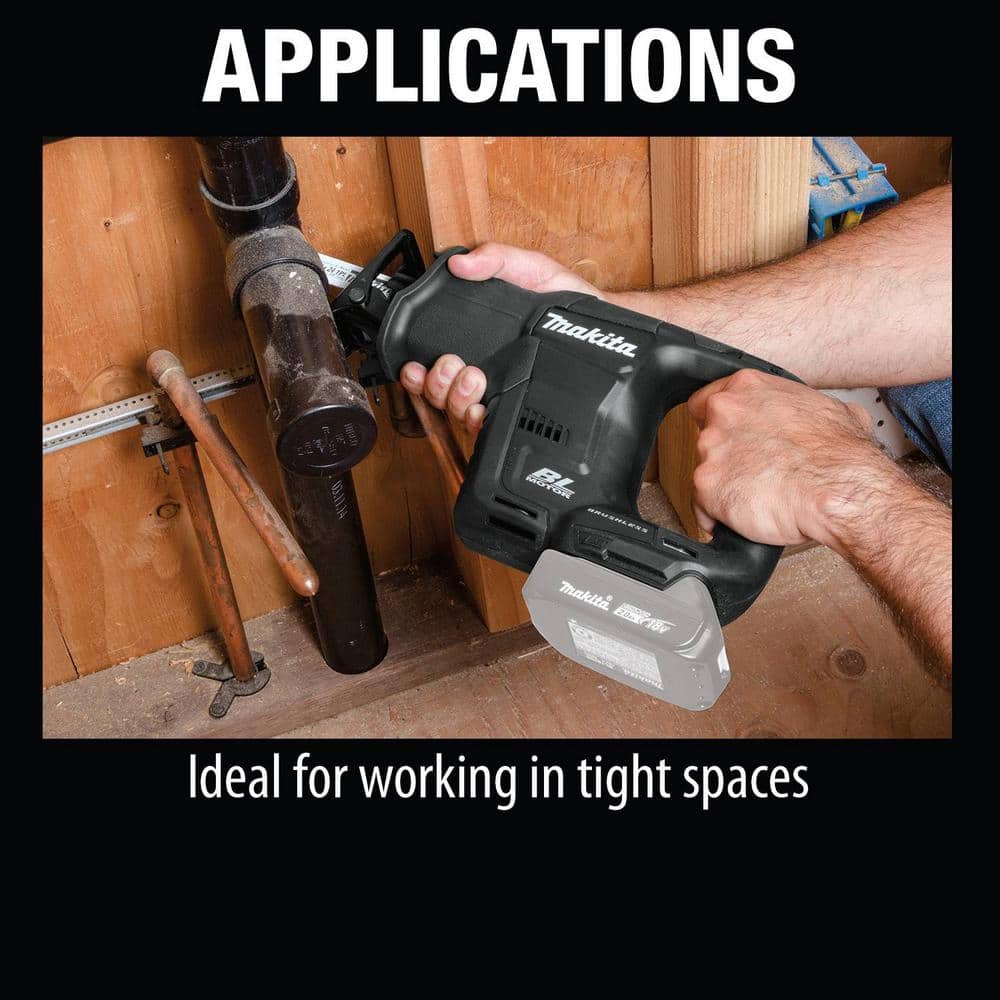The Makita 18V LXT Sub-Compact Brushless Cordless Reciprocating Saw merges lightweight handling with powerful performance, offering 0 to 3,000 strokes per minute. Designed for professionals needing high performance in tight spaces, its compact size and brushless motor enhance efficiency and extend runtime.