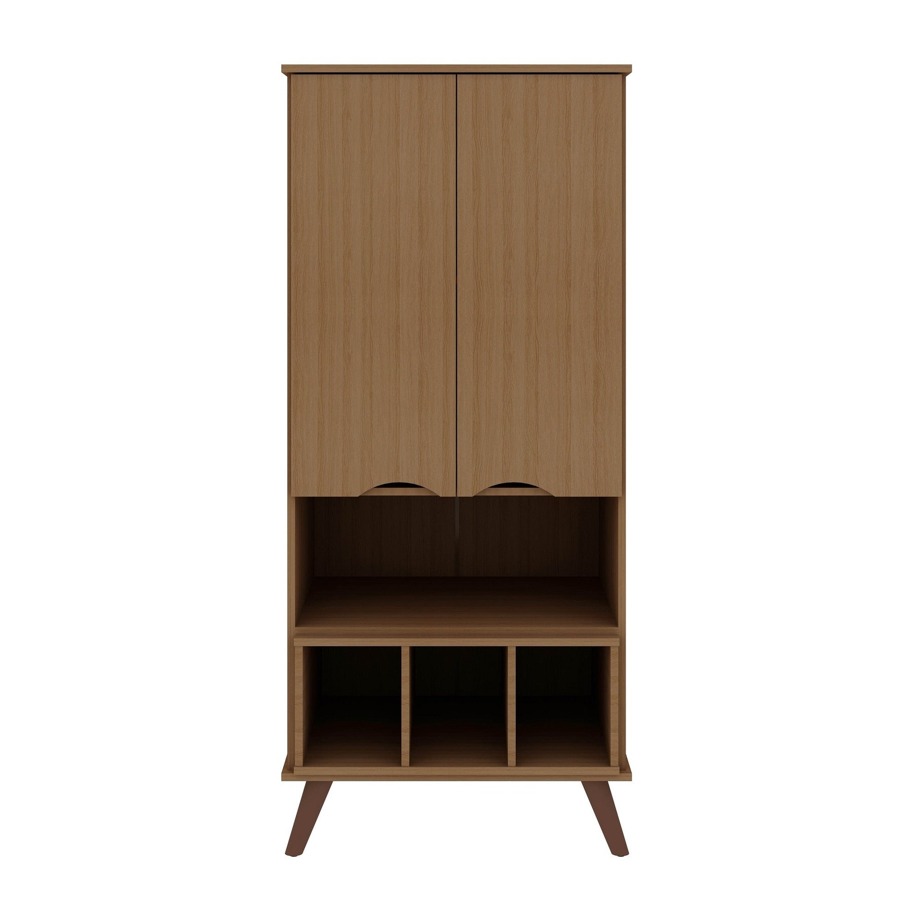 Q: Can the cabinet support heavy items? A: The cabinet is durable with solid wood legs and high-quality materials, but it's recommended to distribute weight evenly across the shelves.
