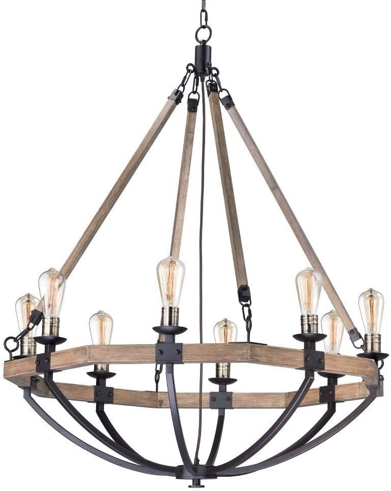 Maxim Lighting Lodge 8-Light Weathered Oak / Bronze Chandelier, 38" Wide