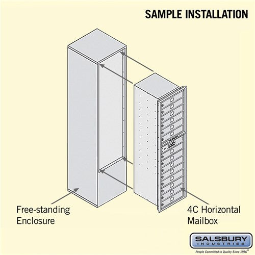 This free-standing 4C horizontal mailbox unit offers a durable and secure solution for mail storage and distribution. Constructed from heavy-duty aluminum with a powder-coated finish, it is suitable for both indoor and outdoor use.
