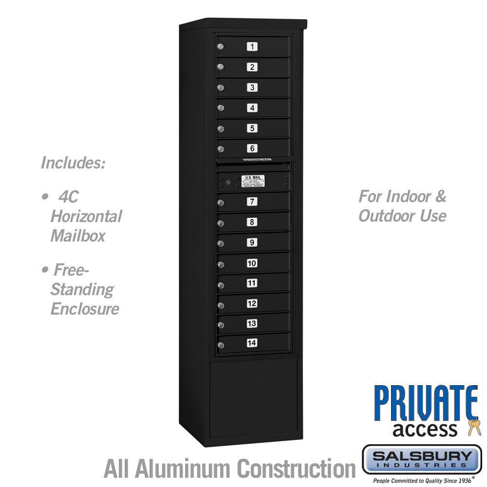Maximum Height Free-Standing 4C Horizontal Mailbox with 14 Doors in Black with Private Access