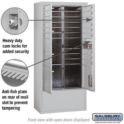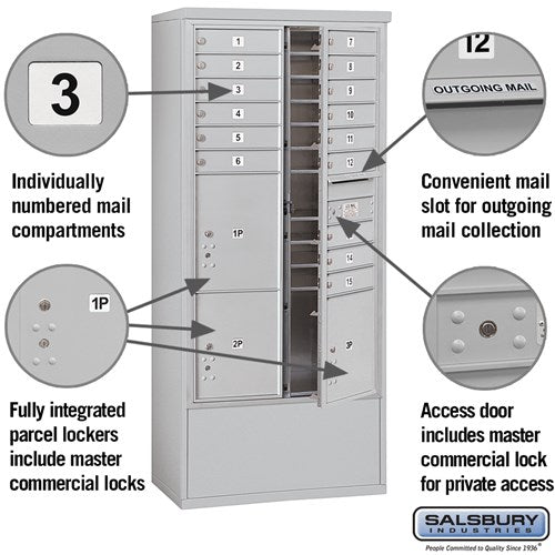 Maximum Height Free-Standing 4C Horizontal Mailbox with 15 Doors and 3 Parcel Lockers in Aluminum with Private Access