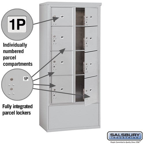 Maximum Height Free-Standing 4C Horizontal Parcel Locker with 8 Parcel Lockers in Aluminum with USPS Access