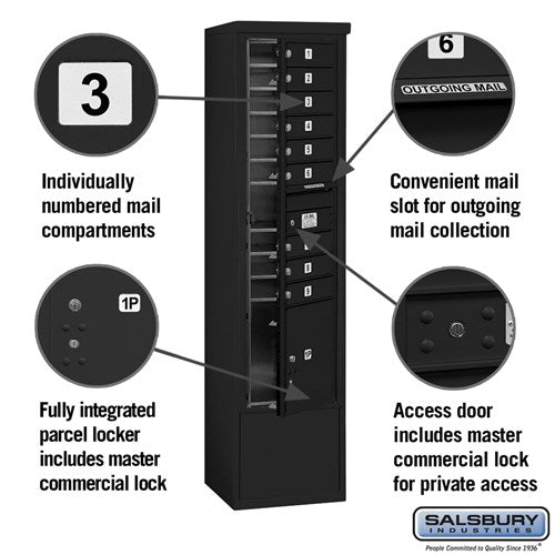 Maximum Height Free-Standing 4C Horizontal Mailbox with 9 Doors and Parcel Locker in Black