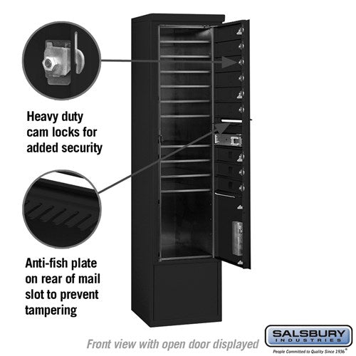 This free-standing mailbox unit offers a durable and secure solution for mail and parcel storage. With heavy-duty aluminum construction and a sleek black powder-coated finish, it is ideal for both indoor and outdoor use.