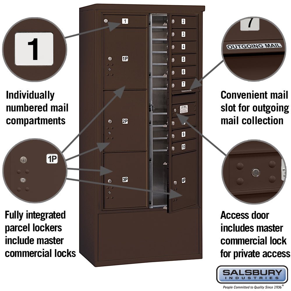 This free-standing mailbox unit is a testament to functional design and robust craftsmanship. Its bronze powder-coated finish adds a touch of sophistication, while the heavy-duty aluminum construction ensures durability. Perfect for both indoor and outdoor settings, it seamlessly integrates into modern or traditional spaces. Make it a centerpiece in your entryway or a practical addition to your corporate mail center.