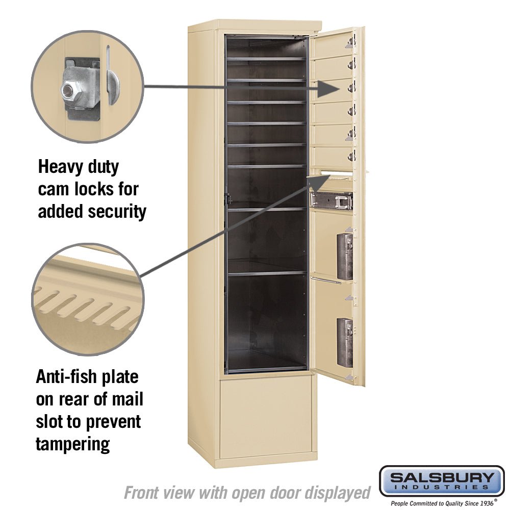 This free-standing mailbox unit is a testament to functional design and durability. Its sandstone finish and robust aluminum construction blend seamlessly into modern or traditional settings, offering both aesthetic appeal and practical utility. The integrated parcel lockers and secure locking mechanisms ensure convenience and peace of mind. Perfect for enhancing communal spaces, this mailbox unit is a stylish and essential addition to any environment.