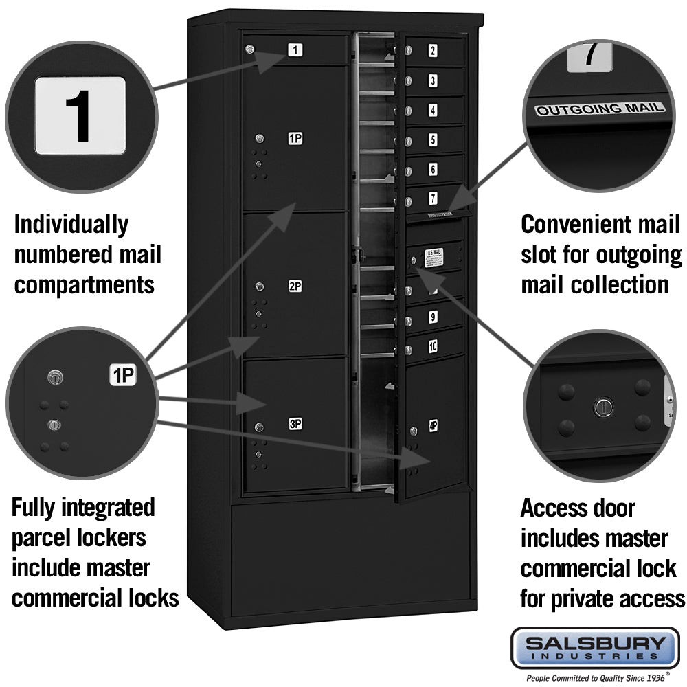 Maximum Height Free-Standing Mailbox with 10 Doors and Parcel Lockers