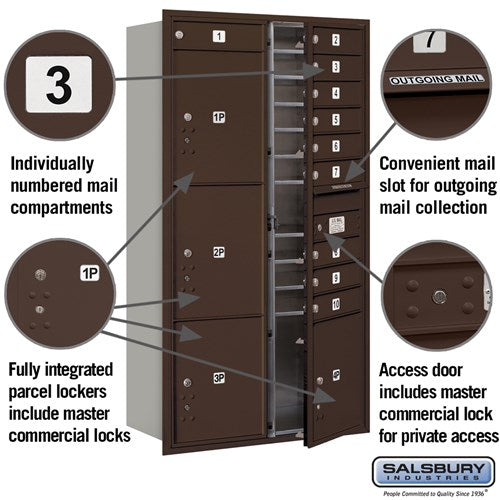Maximum Height Recessed Mounted 4C Horizontal Mailbox with 10 Doors and 4 Parcel Lockers - Bronze - Private Access