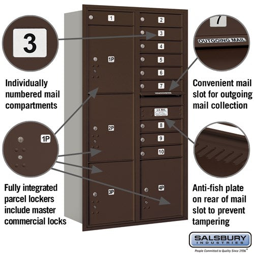 Spacious Design: Includes 10 mail doors and 4 parcel lockers.