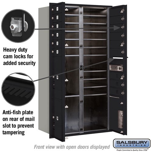 Maximum Height Recessed Mounted 4C Horizontal Mailbox with 15 Doors and 3 Parcel Lockers - Front Loading