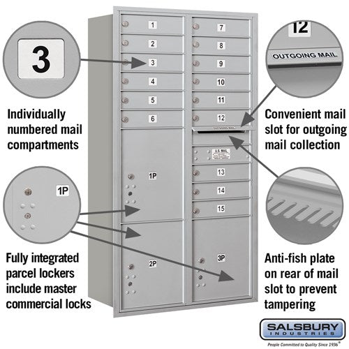 - Spacious Configuration: Includes 15 mail compartments and 3 parcel lockers.