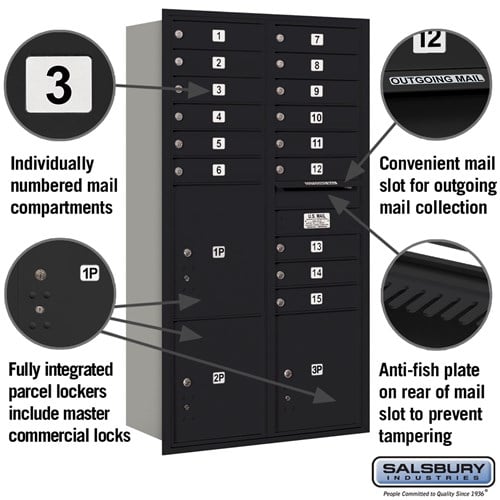 • Spacious Design: Includes 15 mail doors and 3 parcel lockers for ample storage.