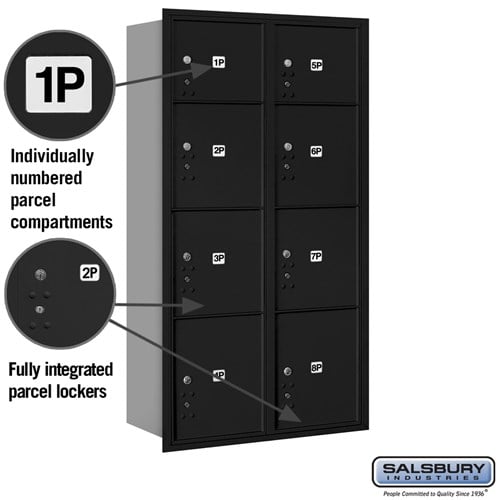 Maximum Height Recessed Mounted 4C Horizontal Parcel Locker with 8 Compartments - Black - Rear Loading