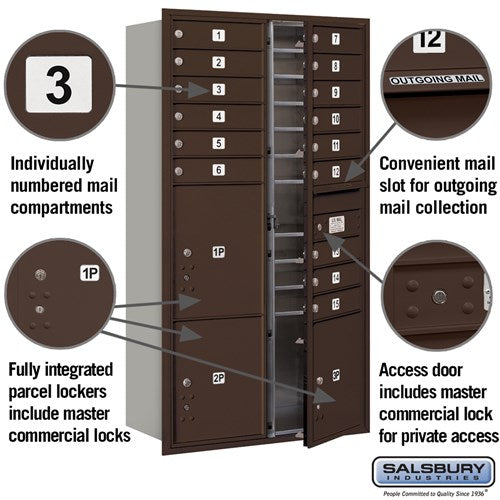 This recessed mounted 4C horizontal mailbox offers USPS-approved access with a durable bronze finish. Featuring 10 mail compartments and 4 parcel lockers, it is ideal for residential and commercial use.