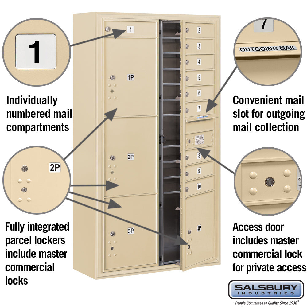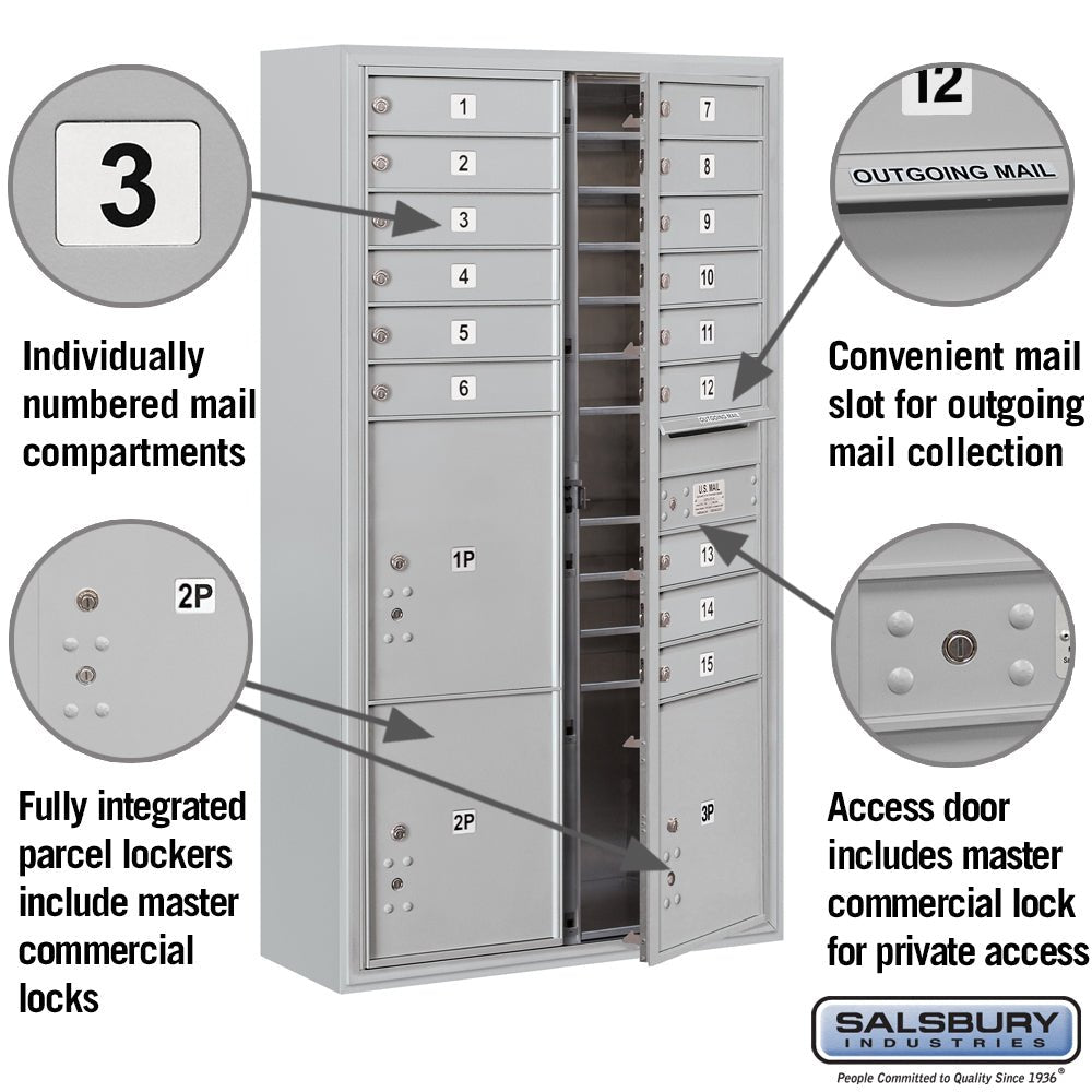 Maximum Height Surface Mounted 4C Horizontal Mailbox with 15 Doors and 3 Parcel Lockers