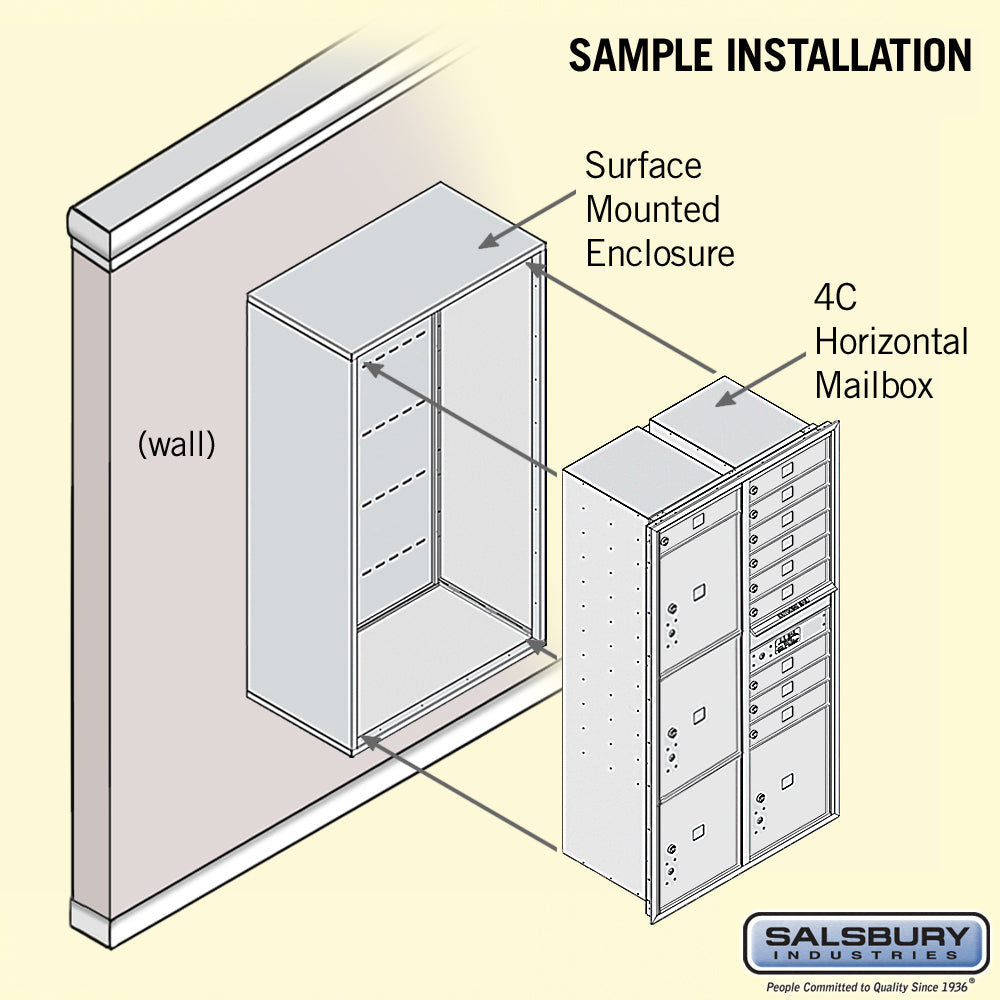 This surface-mounted 4C horizontal mailbox offers private access with 15 mail compartments and 3 parcel lockers. Constructed from heavy-duty aluminum, it is ideal for indoor or outdoor use and features a durable powder-coated finish.