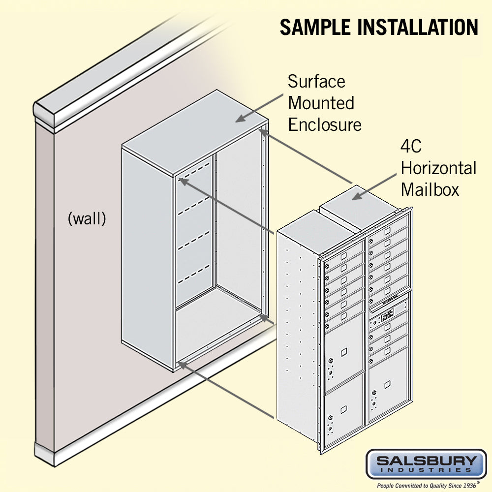 This surface-mounted 4C horizontal mailbox offers private access with 15 mail compartments and 3 parcel lockers. Constructed from heavy-duty aluminum, it is ideal for indoor or outdoor use and features a durable powder-coated finish.