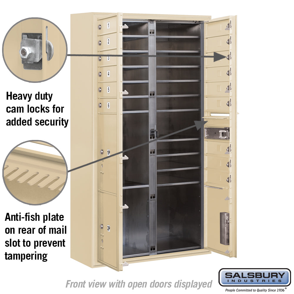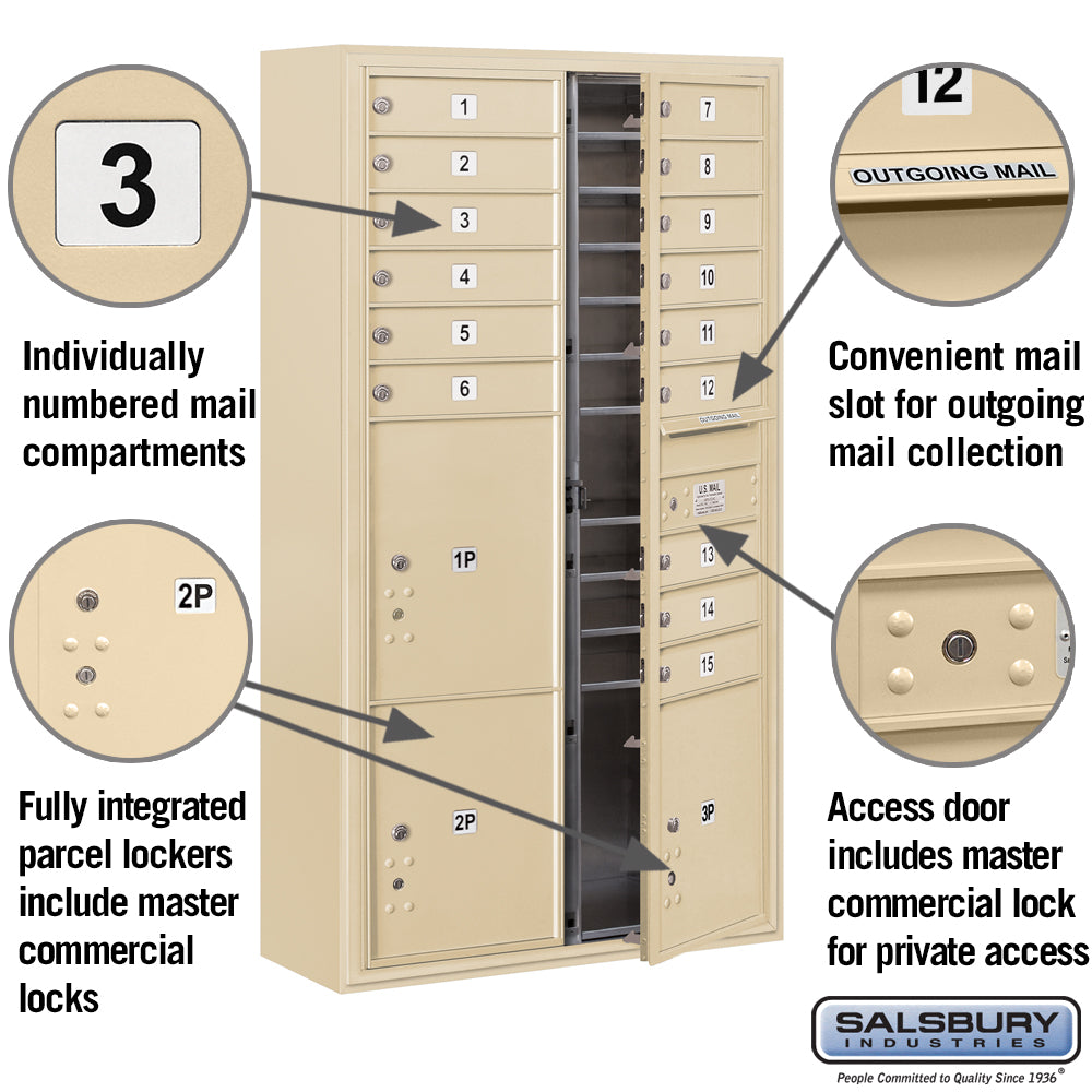 Maximum Height Surface Mounted 4C Horizontal Mailbox with 15 Doors and 3 Parcel Lockers in Sandstone