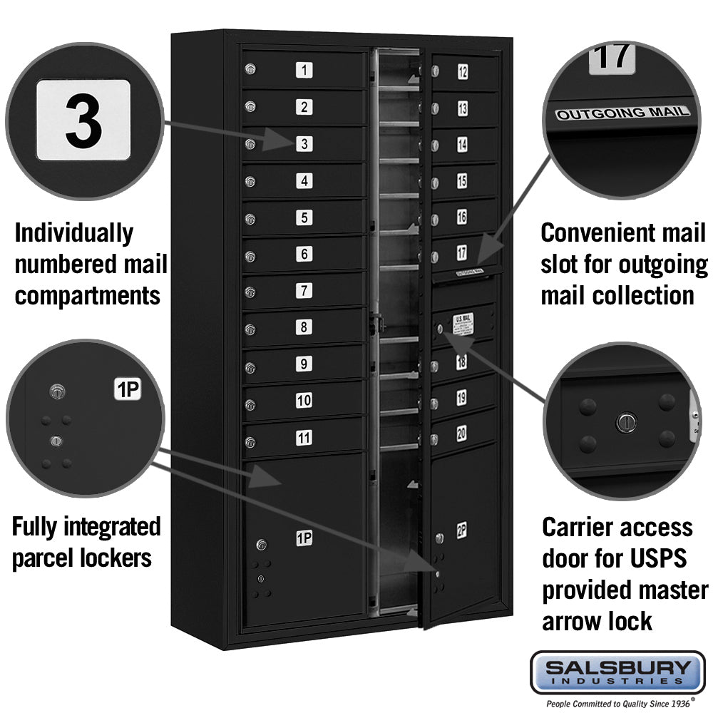 Maximum Height 4C Horizontal Mailbox with 20 Doors and 2 Parcel Lockers
