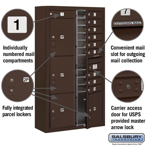 Maximum Height Surface Mounted 4C Horizontal Mailbox with Parcel Lockers in Bronze