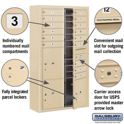 - Maximum Height Design: Features 15 mail compartments and 3 parcel lockers.