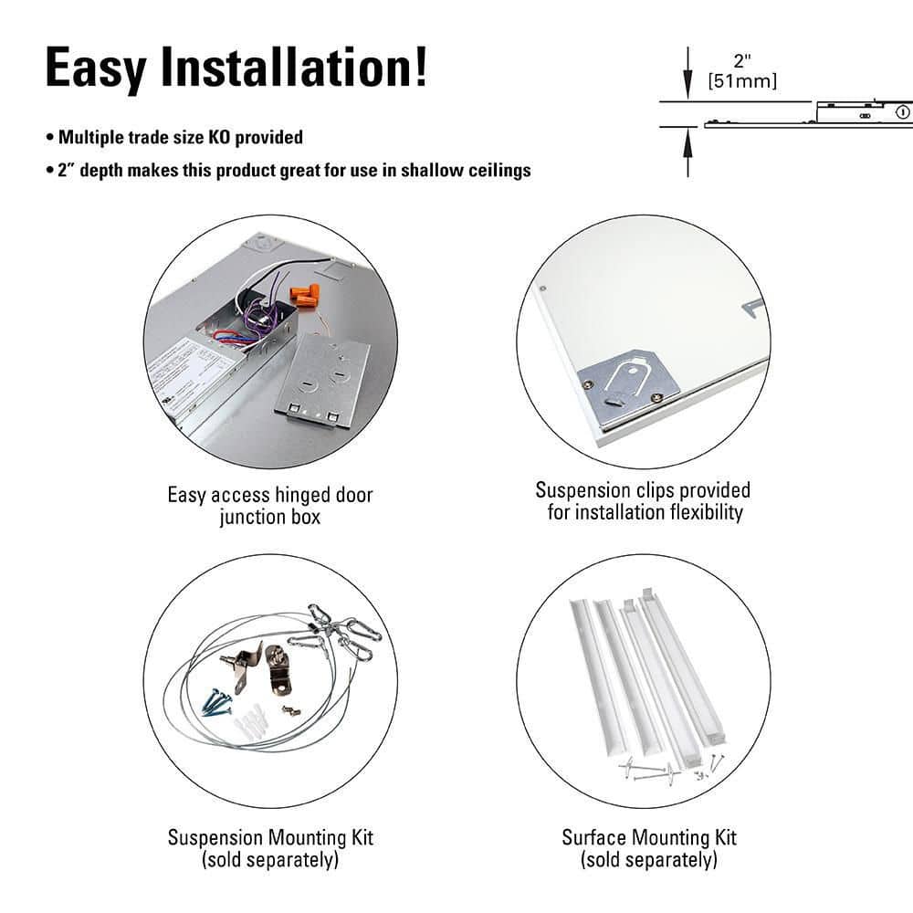 Illuminate your spaces with the Metalux 2x2 LED Flat Panel Troffer Light. Providing a bright, energy-efficient solution with 4200 lumens and a clean, uniform glow, this fixture is perfect for shallow ceiling installations. With its ultra-slim profile and dimmable capabilities, it easily adapts to both commercial and residential environments.