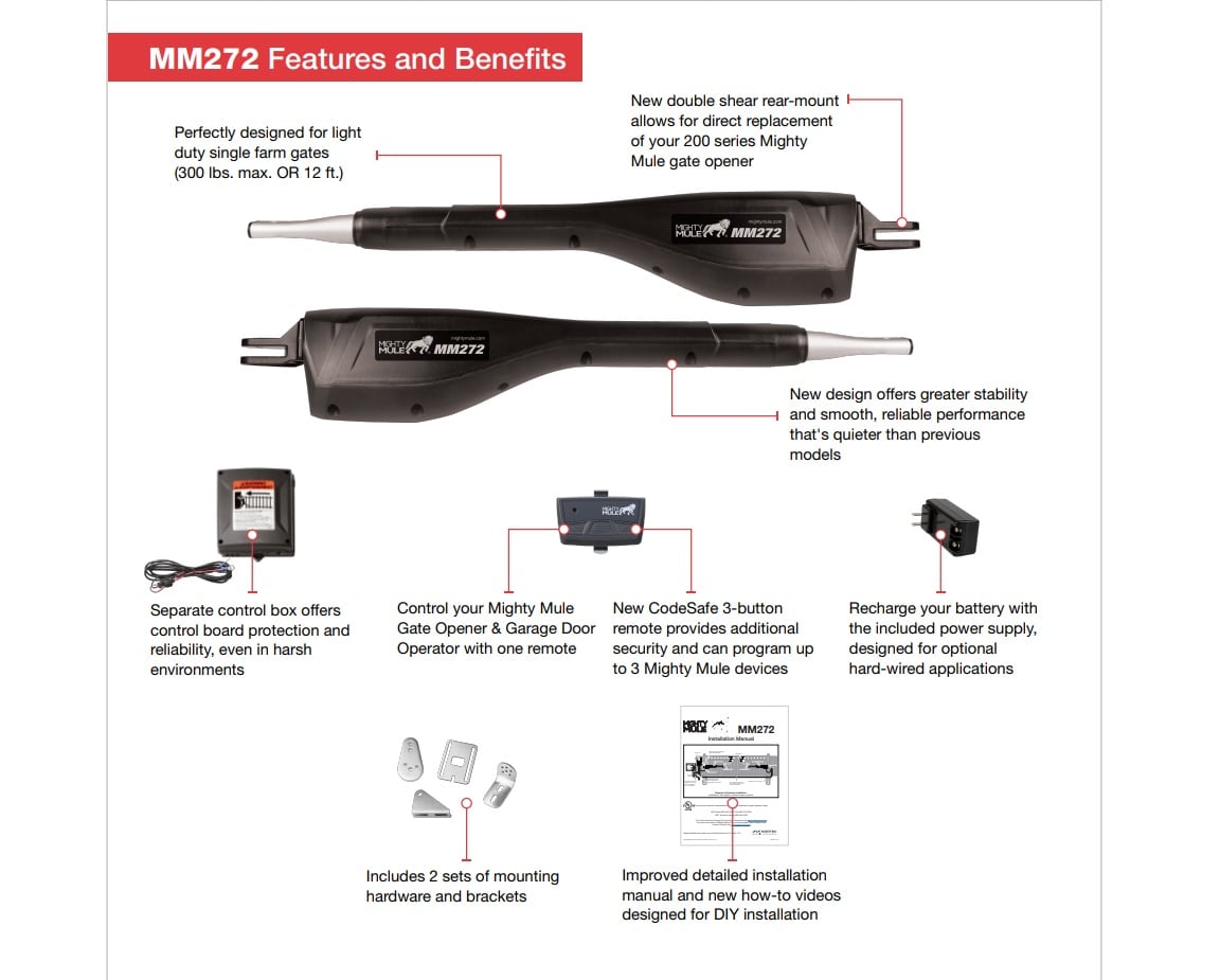 User-friendly: Backed by 24/7 technical support and a 12-month Mighty Mule warranty for peace of mind.