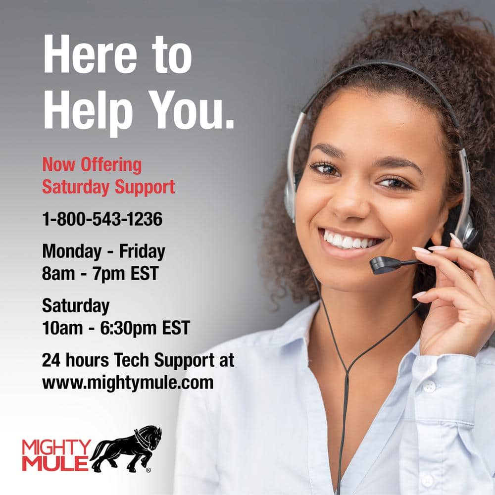 Q: Is technical support available for the installation process? A: Yes, Mighty Mule provides 24-hour technical support to assist with installation and troubleshooting.