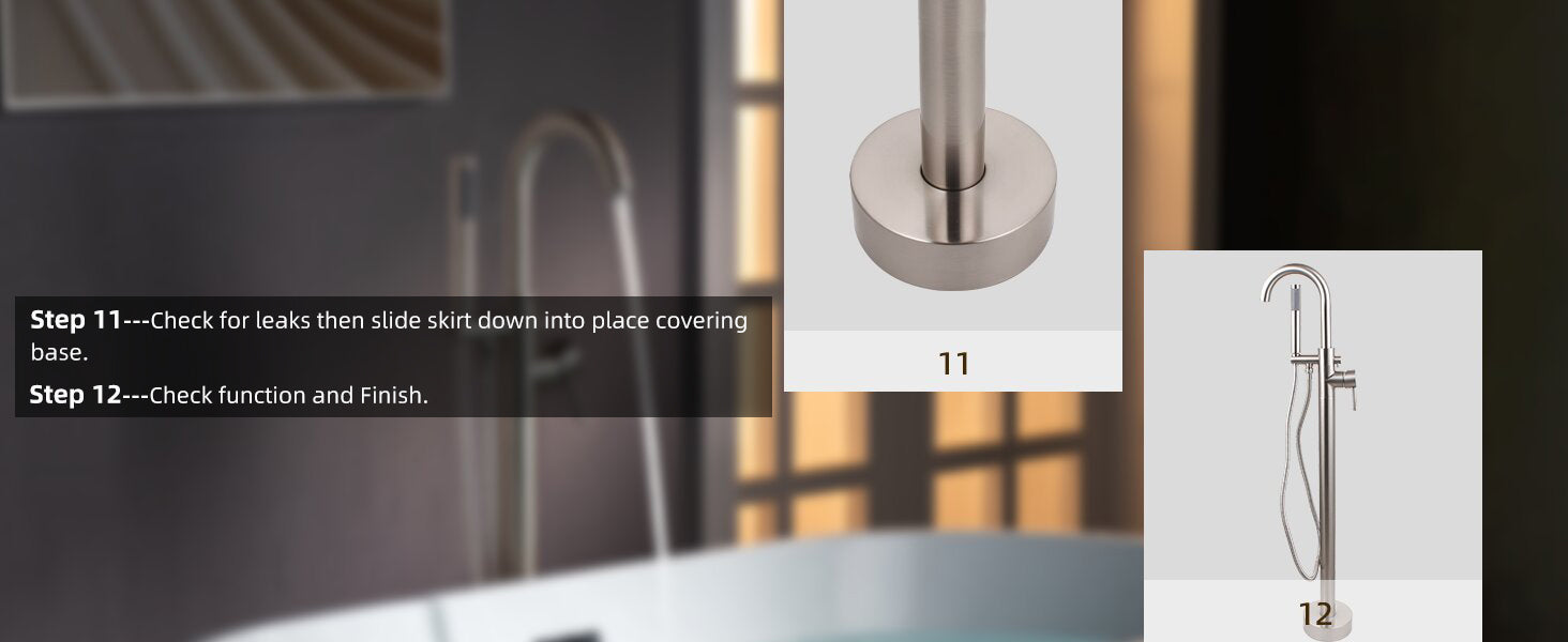 A contemporary single-handle floor-mount tub filler designed for freestanding bathtubs. Solid brass body with an oil rubbed bronze finish, a high-arch swivel spout, and a matching hand shower deliver style and dependable performance.