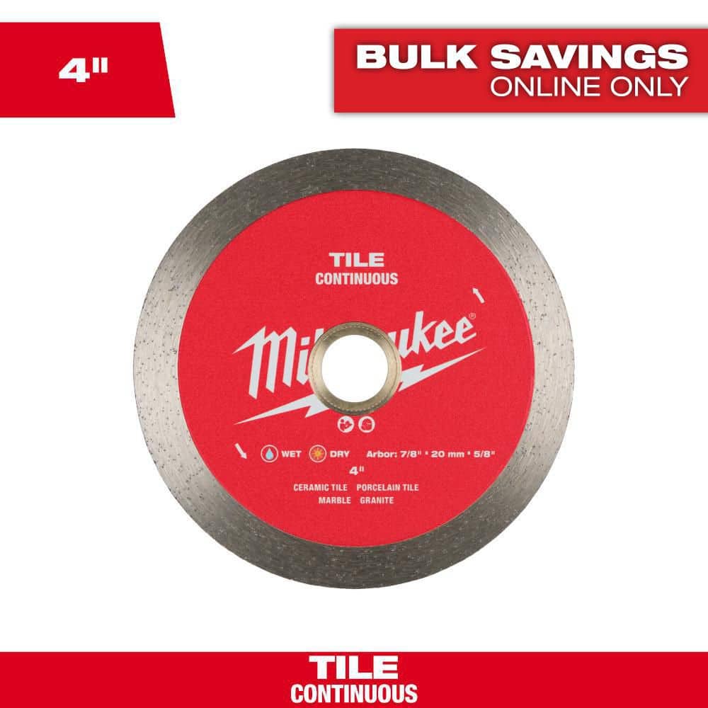 Milwaukee 4 in. Continuous Tile Diamond Blade – 7/8"/20mm/5/8" Arbor, 15,000 RPM