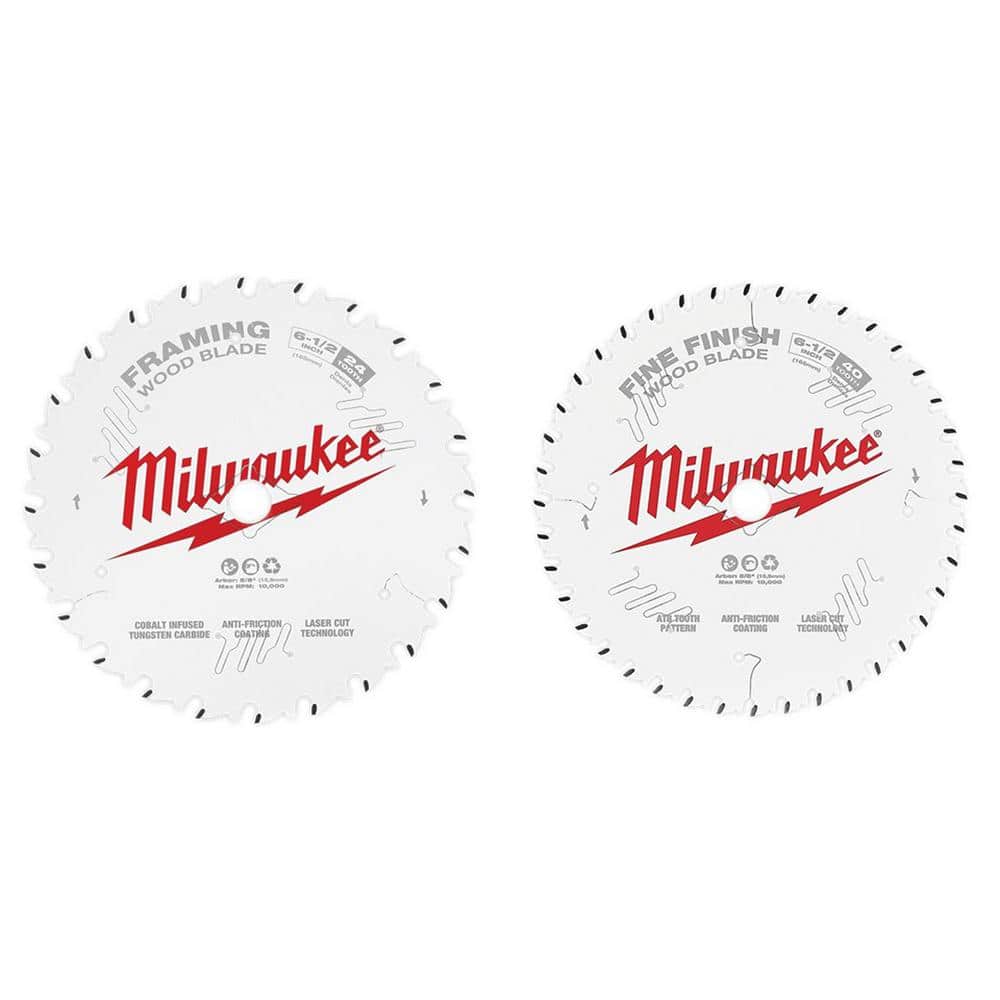 Milwaukee 6-1/2 in. x 40-Tooth Fine Finish Circular Saw Blade (2-Pack)