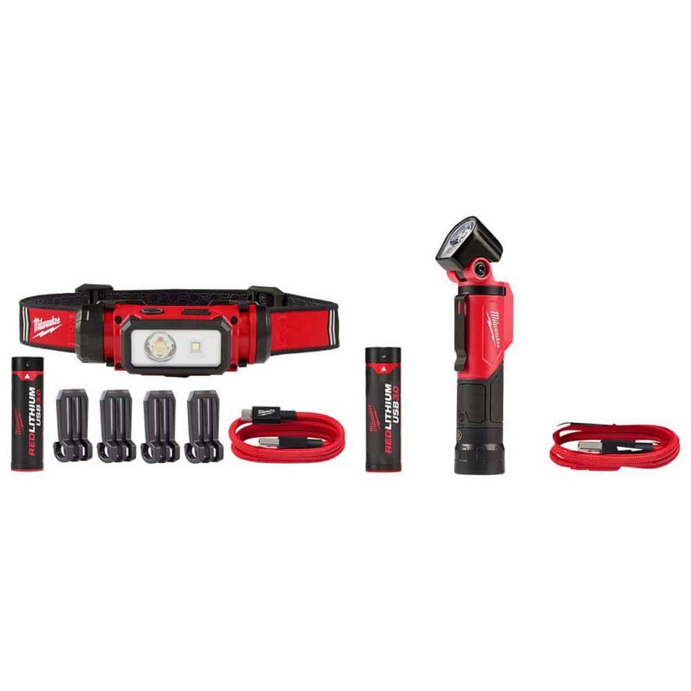 Milwaukee 600 Lumens LED REDLITHIUM Hard Hat Headlamp + 500 Lumens Pivoting REDLITHIUM USB Flashlight Kit (Model 2163-21/2113-21)