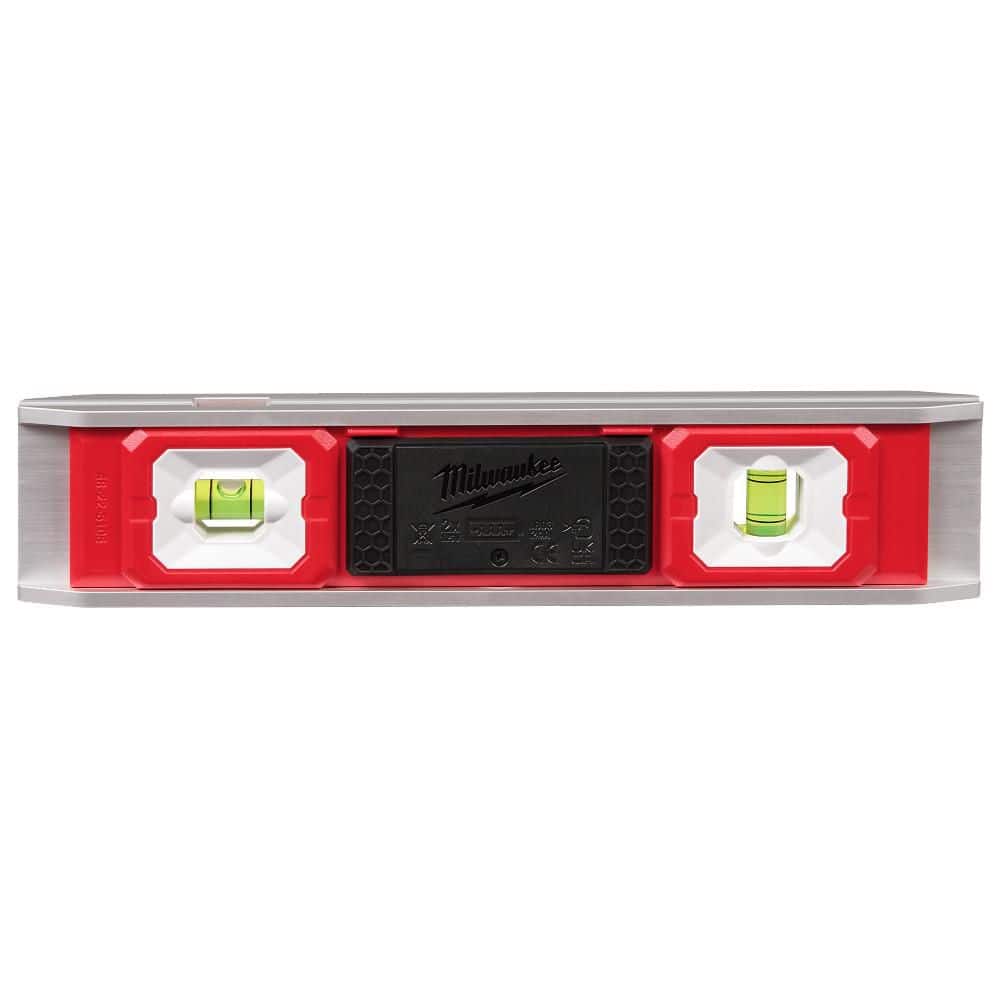A durable 9-inch Milwaukee torpedo level designed for high visibility and accuracy. Dual LED-lighted vials and high-contrast surrounds deliver clear readings, while rare earth magnets and an aluminum frame ensure secure, long-lasting performance on the jobsite.